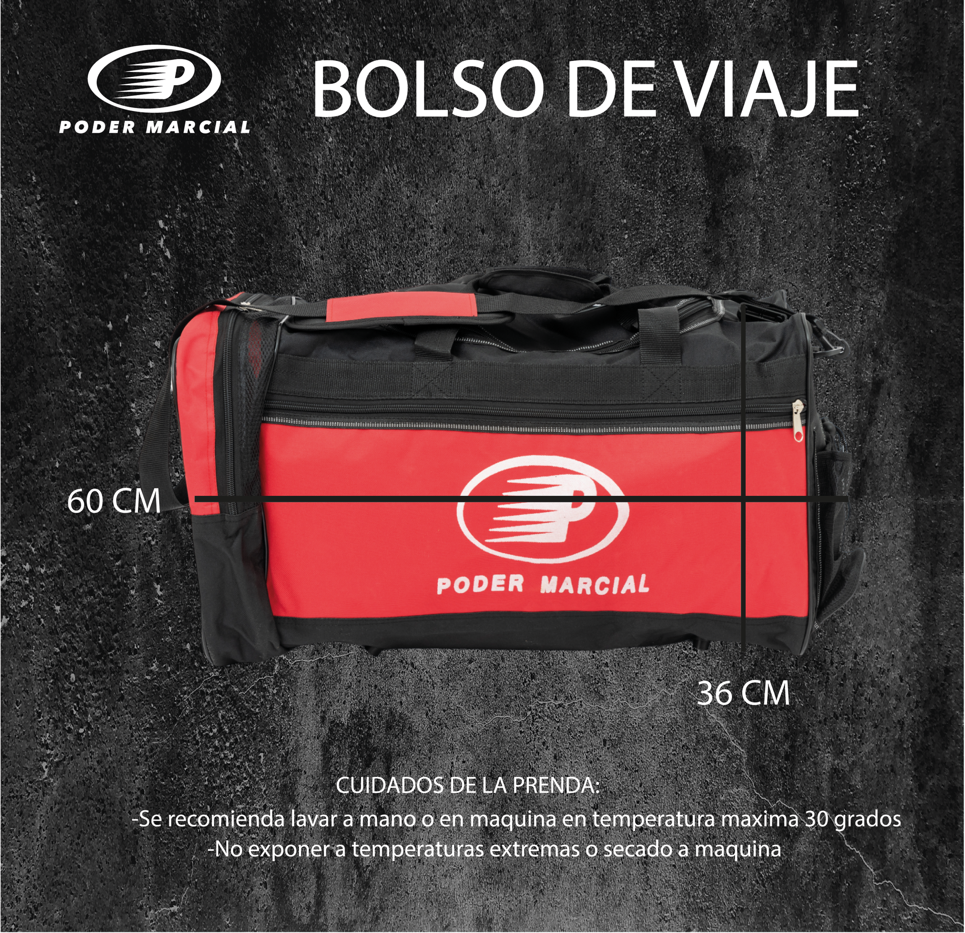 El Bolso de Viaje es ideal para tus competencias. Cuenta con cierre doble reforzado y correa reforzada para una mayor durabilidad. Sus laterales con bolsillos permiten un fácil acceso a objetos importantes. Con medidas de 60 x 31 x 36 cm, es el compañero perfecto para cualquier viaje.