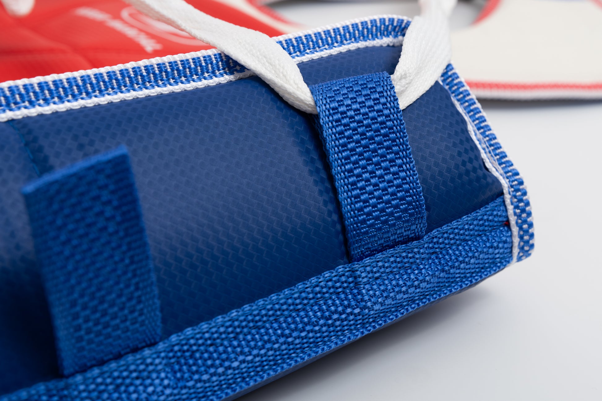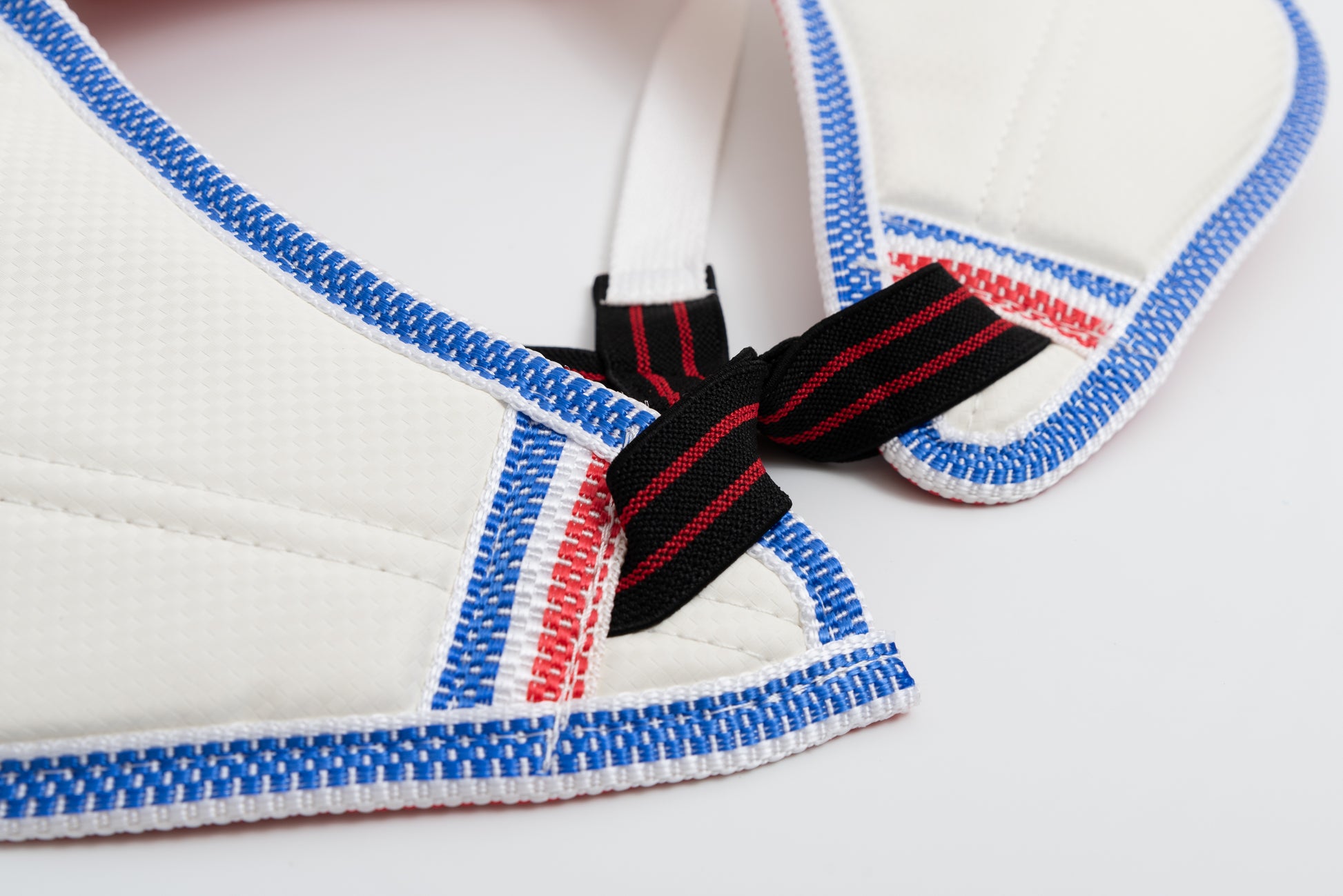 Posee relleno de espuma en la zona superior para brindar protección a la zona clavicular y desde allí nacen dos largas correas con las cuales se ata.